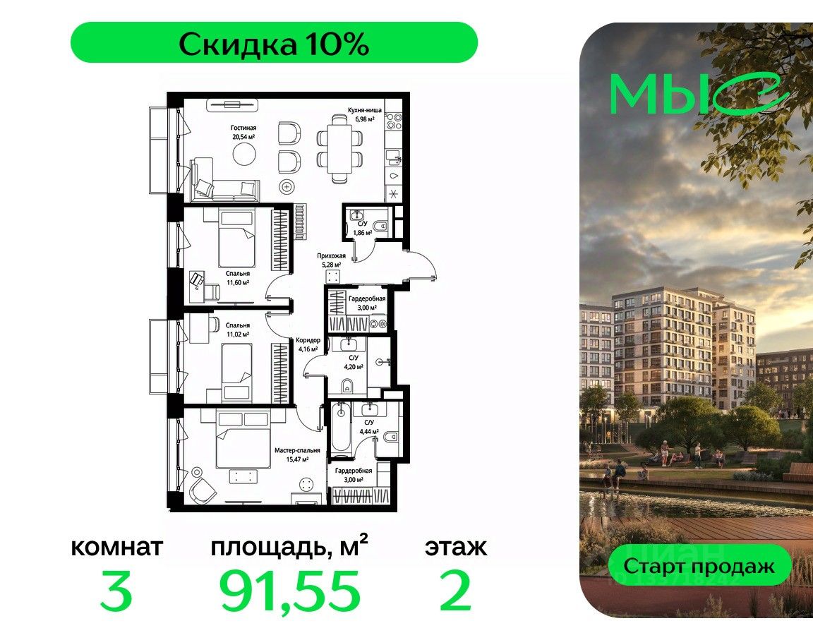 ЖК "МЫС" - идеальное место для тех, кто хочет объединить городскую жизнь с близостью к природе. Здесь каждый найдет формат жилья на свой вкус: многоквартирные и клубные дома для больших семей, ценящих приватность и простор, частные дома и таунхаусы для истинных фанатов загородной жизни, которые не готовы отказываться от городского комфорта.