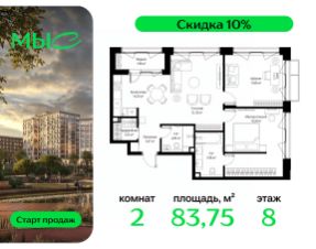 Продаётся 2-комнатная квартира общей площадью 83.75 м² без отделки в премиальном жилом комплексе "МЫС" на 8-м этаже 12 этажного дома. Квартира расположена в корпусе "Сибирь".