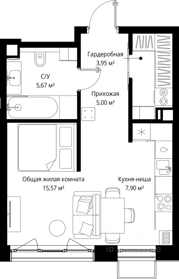 Продаётся 1-комнатная квартира общей площадью 38.09 м² без отделки в премиальном жилом комплексе "МЫС" на 2-м этаже 12 этажного дома. Квартира расположена в корпусе "Сибирь".
