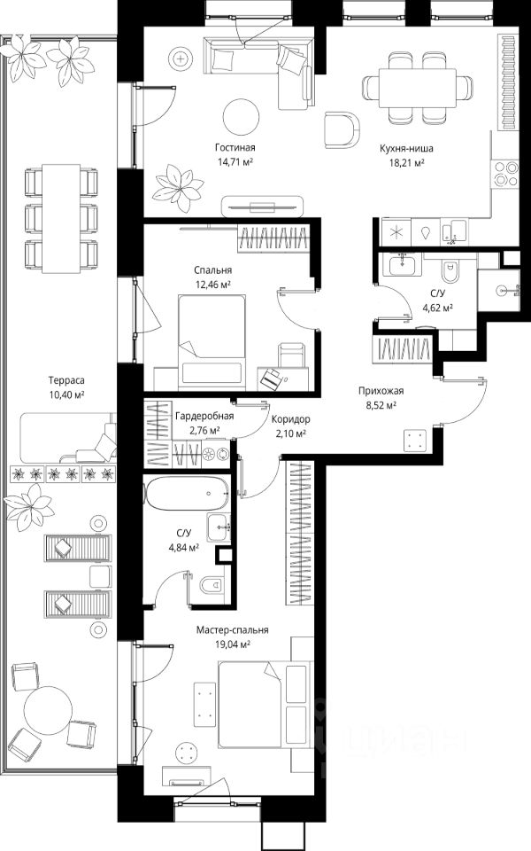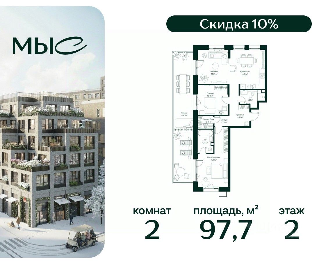 Продаётся 2-комнатная квартира общей площадью 97.66 м² без отделки в премиальном жилом комплексе "МЫС" на 2-м этаже 12 этажного дома. Квартира расположена в корпусе "Сибирь".
