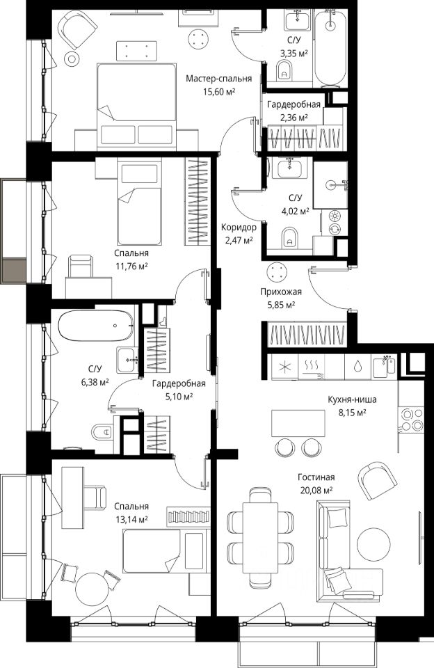 Продаётся 3-комнатная квартира общей площадью 98.26 м² без отделки в премиальном жилом комплексе "МЫС" на 3-м этаже 12 этажного дома. Квартира расположена в корпусе "Сибирь".