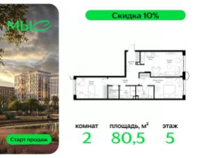 Продаётся 2-комнатная квартира общей площадью 80.50 м² без отделки в премиальном жилом комплексе "МЫС" на 5-м этаже 12 этажного дома. Квартира расположена в корпусе "Сибирь".