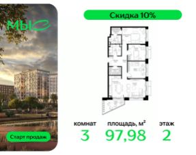 Продаётся 3-комнатная квартира общей площадью 97.98 м² без отделки в премиальном жилом комплексе "МЫС" на 2-м этаже 12 этажного дома. Квартира расположена в корпусе "Сибирь".