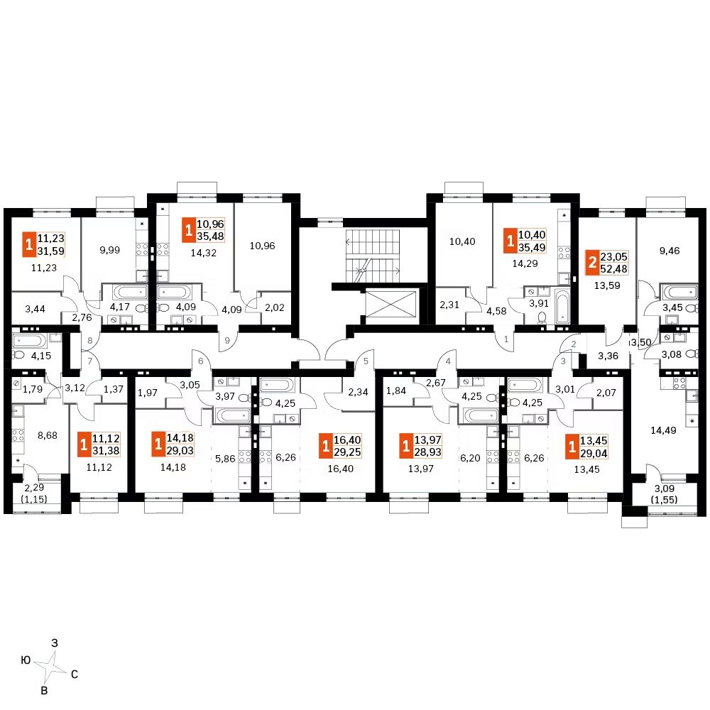 Продаётся 1-к квартира номер 84 общей площадью 31.38 кв.м на 2-м этаже 4 этажного дома. Без отделки.
