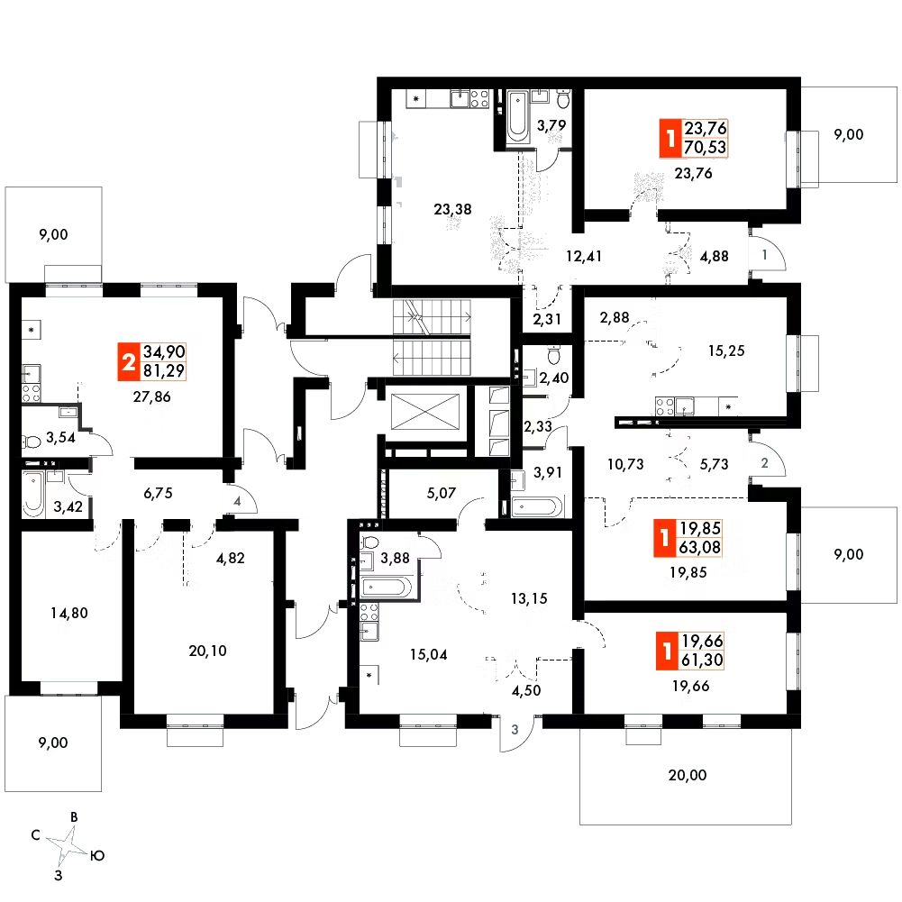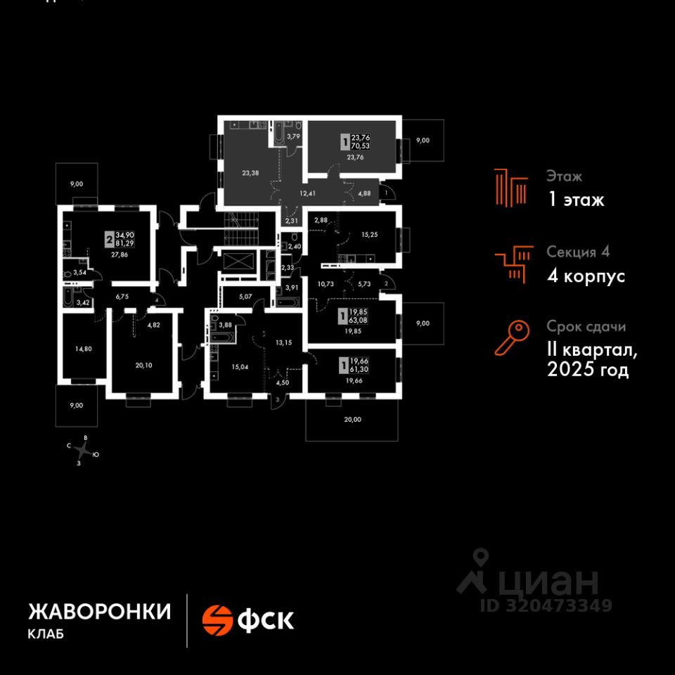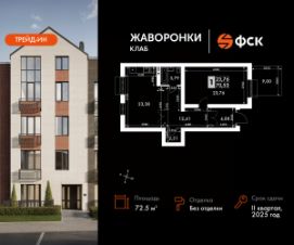 Продаётся 2-к квартира номер 83 в сданном корпусе общей площадью 72.5 кв.м на 1-м этаже 4 этажного дома.