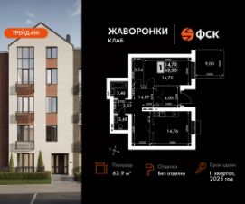 Продаётся 2-к квартира номер 122 в сданном корпусе общей площадью 63.9 кв.м на 1-м этаже 4 этажного дома.