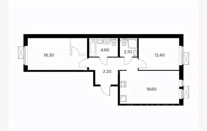 2 санузла (один с душевой, другой с ванной) - очередей утром не будет =)