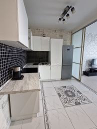 Квартира с евроремонтом, полностью готова к проживанию. Жилая площадь составляет 20 кв. м, кухня — 10 кв. м. Окна выходят на улицу.
