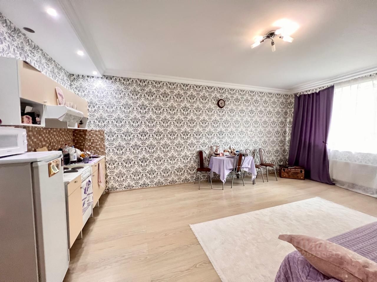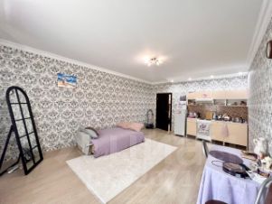 Планировка: просторная кухня-гостиная с балконом, совмещенный санузел, прихожая. Вид из окон во двор.