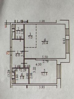 Общ. 49,7 кв.м., ЕВРОДВУШКА: кухня-5 кв.м., комнаты: 17,1 кв.м., 12,2 кв.м.,