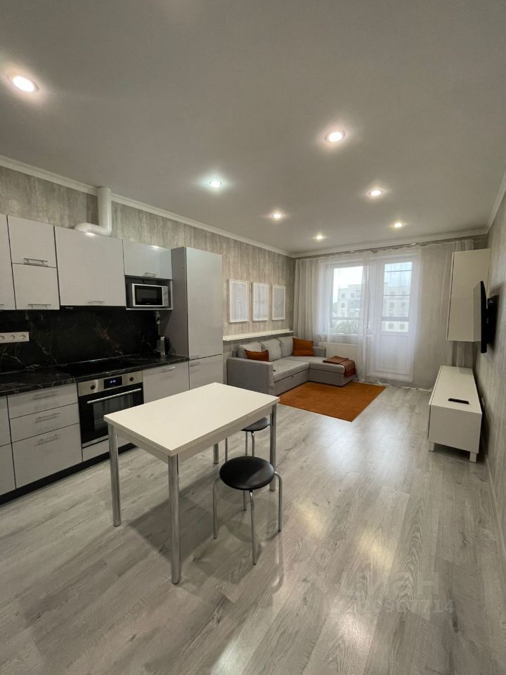 Квартира готова для проживания В квартире остается мебель и бытовая техника. Квартира распашная (не угловая), евро-трешка с большой кухней гостиной (21.9 кв.м) с лоджией (2.7 кв.м) и двумя полноценными комнатами (11.8 кв.м и 15.5 кв.м). Квартира расположена во второй линии домов ЖК. Окна выходят во двор и на соседний дом.
