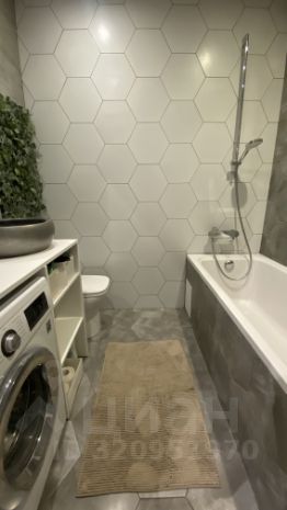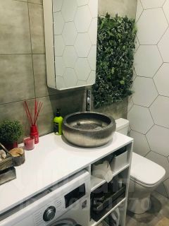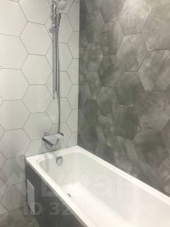 Влагостойкий ламинат 33 класса. Натяжные потолки. В ванной комнате: испанская плитка шестигранник, электрический полотенцесушитель, сантехника Hansgrohe (европейское производство), композитная ванна Jacob Delafon (не акрил), унитаз Vitra.