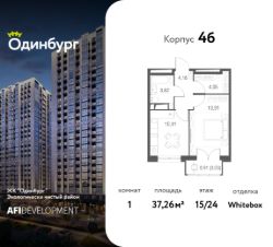 Предлагаем вашему вниманию уютную 1-комнатную квартиру общей площадью 37,26 кв.м на 15 этаже в новой очереди строительства ЖК "Одинбург". Этот обновленный проект от компании AFI Development включает в себя актуальные архитектурные решения и функциональные планировки. Для всех действует предложение от застройщика Назови свою скидку, подробности акции уточняйте у менеджеров отдела продаж.