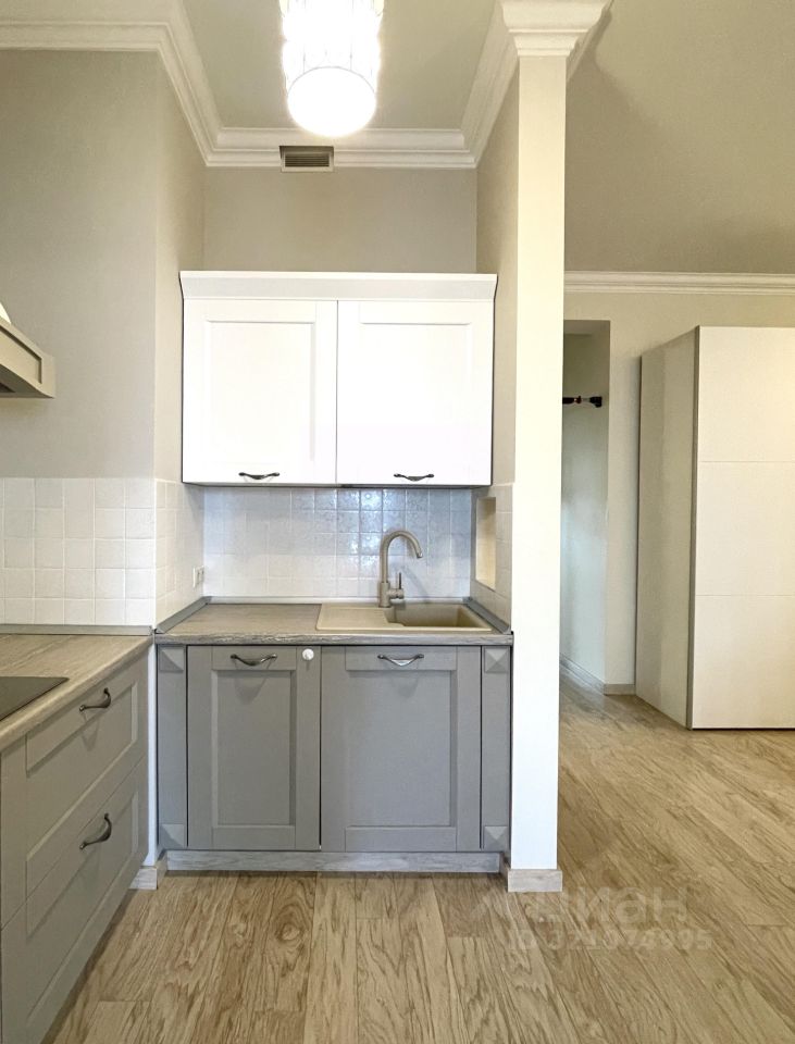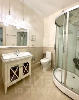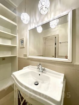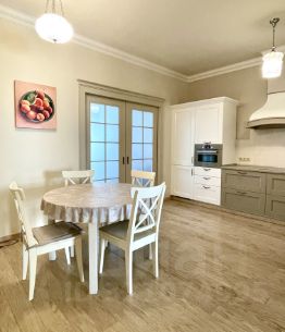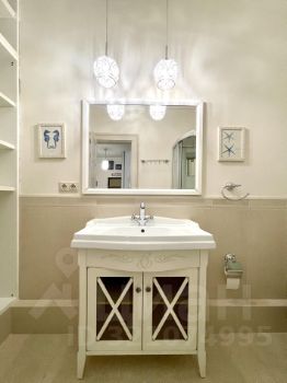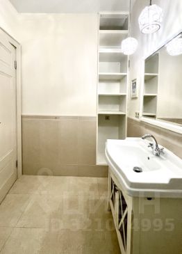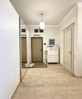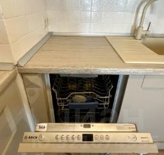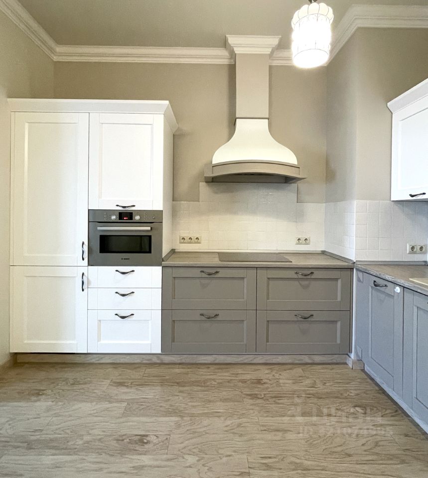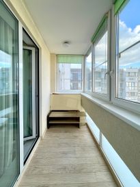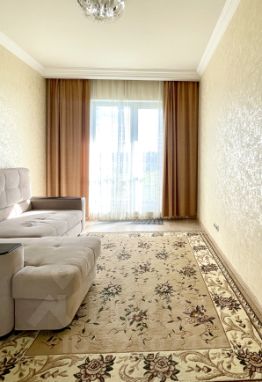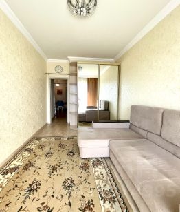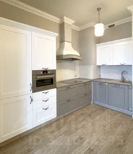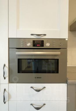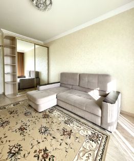 В квартире произведен качественный ремонт с использованием дорогих материалов, итальянская плитка и мебель в ванной. Есть теплый пол, панорамные окна и французский балкончик. Кухонная мебель сделана на заказ, встраиваемая техника Bosch, Liebkherr.