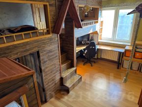 • Уникальная детская из натуральных материалов с зонами: сон, игра, спорт, работа, хранение 17м2