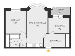 56,9 м²