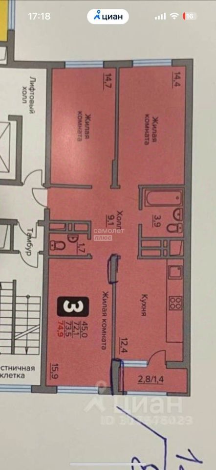 Просторная и уютная квартира площадью 75 м², где стиль встречается с комфортом.