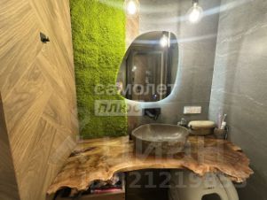 Раковина в ванной из натурального речного камня,установлена на слэб(карагач).