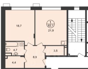 Общая площадь 61,9 м2.