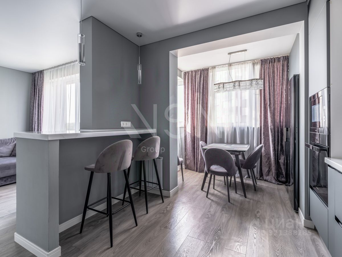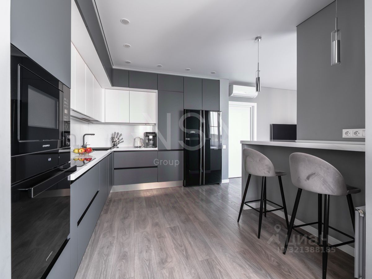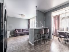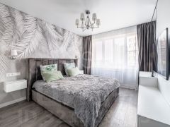 Общая площадь — 78,8 м². Планировка максимально функциональна: большая кухня-гостиная, две изолированные комнаты, два санузла, отдельная гардеробная. Выполнен дизайнерский ремонт с использованием качественных материалов. Вся мебель и техника остаются новому владельцу.