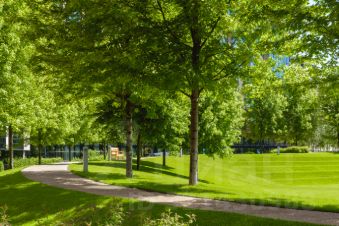 Комплекс располагается на территории ландшафтного парка с каскадной набережной реки Сетунь, общая площадь 8 Га. Парк условно поделен на три зоны: рекреационные, детские и спортивные пространства. Проложены прогулочные аллеи и дорожки. 26 километров вело-прогулочных дорожек. Пространство внутреннего двора тихое и уютное.