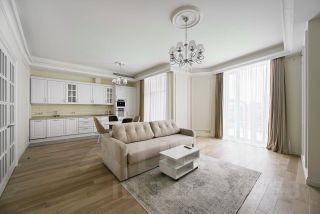 Выполнен высококачественный авторский ремонт из материалов премиум-класса по дизайн проекту. Квартира полностью укомплектована мебелью и техникой.