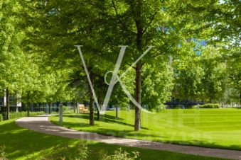 Комплекс располагается на территории ландшафтного парка с каскадной набережной реки Сетунь, общая площадь 8 Га. Парк условно поделен на три зоны: рекреационные, детские и спортивные пространства. Проложены прогулочные аллеи и дорожки. 26 километров вело-прогулочных дорожек. Пространство внутреннего двора тихое и уютное.