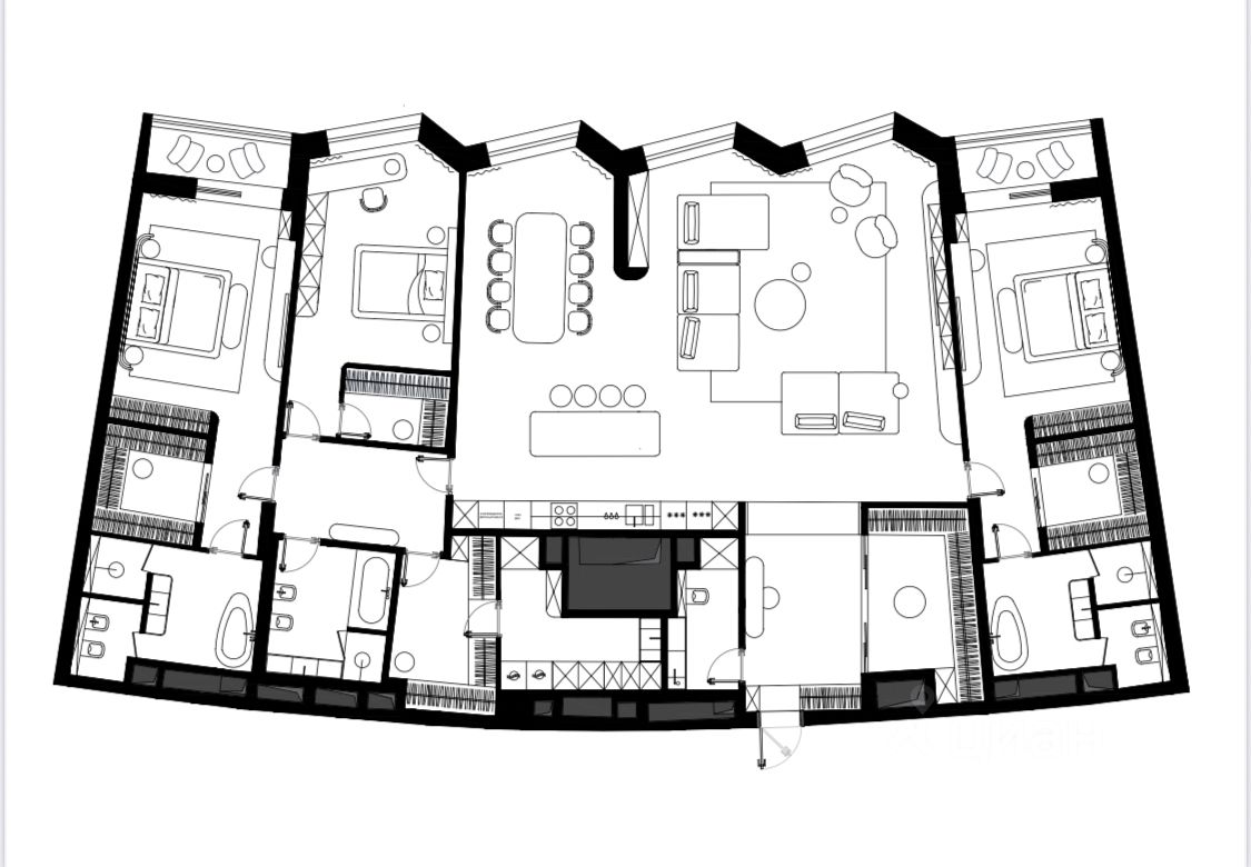 Функциональная планировка включает в себя: кухню-гостиную с зоной отдыха, мастер-спальню с вместительной гардеробной и ванной комнатой, 2 спальни, гостевой санузел, гардеробную при входе.