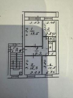 Квартира расположена на 4 этаже 5-этажного кирпичного дома 1988 года постройки. Общая площадь составляет 65,6 кв. м, из которых 40,3 кв. м — жилая площадь. Три изолированные комнаты с окнами на улицу, площадь комнат: 12,3 + 10,5 + 17,5 кв. м. Также есть балкон — отличное место для отдыха.
