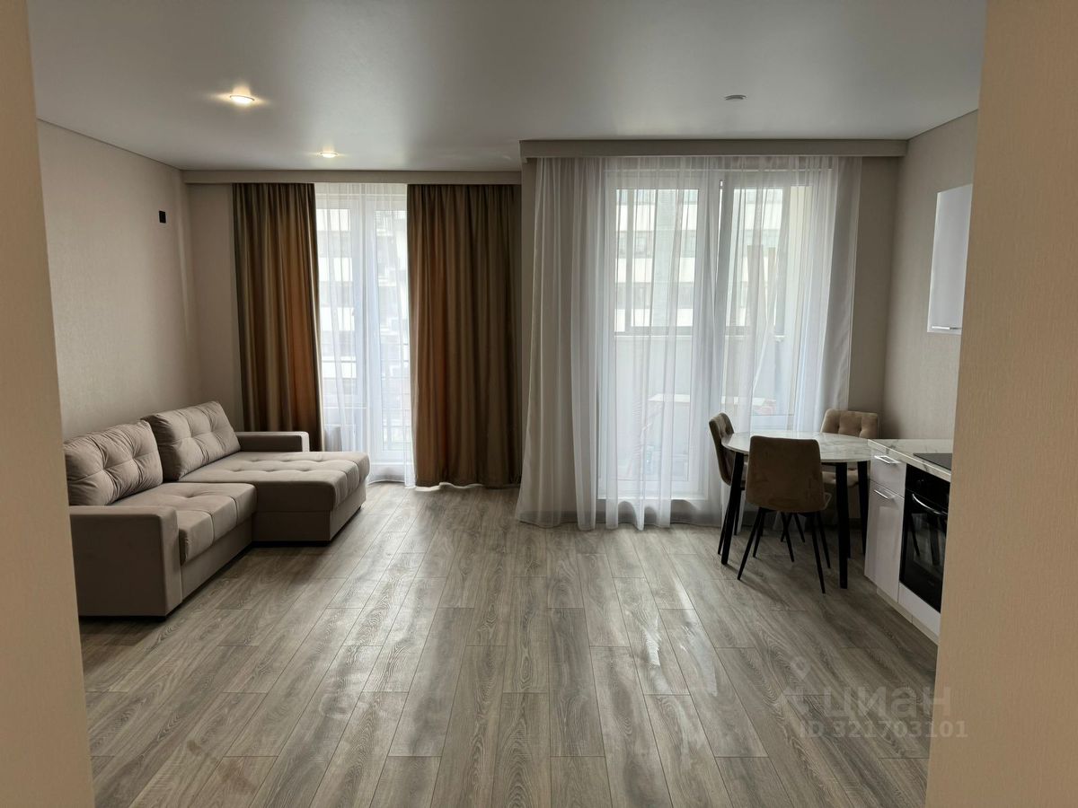 В квартире выполнен качественный ремонт, есть все необходимое для комфортного проживания: диван, шкаф, кухня со встроенной техникой, стол, стулья, стиральная машинка.