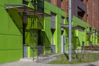 Всего внутри комплекса будет две наземных автостоянки и два подземных паркинга. Комплекс оснащается современными охранными системами с круглосуточным видеомониторингом, контролем въезда и доступа в здание. Во дворах будут размещены детские и спортивные площадки, проложены велосипедные дорожки, посажены деревья и цветники, планируется оригинальное ландшафтное зонирование территории на три участка по названию главного компонента благоустройства: "камень", "дерево" и "металл".