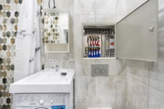 На входе Esta Trafic с терморазрывом, сувальдным механизмом и камерой в облако, сантех с инсталляцией и душем, АВВ электрика, изоляция шуманет, керамогранит программ. по Wi-Fi теплый пол, в комнате уложена елочка, инверторный кондиционер... Все оборудование и техника новое не арендного качества в наличие абсолютно все ничего покупать не надо...