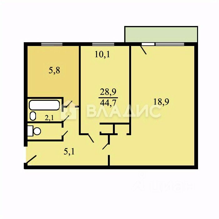 Квартира расположена на последнем этаже, что обеспечивает достаточное количество света. Комнаты изолированы, их площадь составляет 10,1 и 18,2 кв. м, высота потолков — 2,8 м. Есть балкон. Окна выходят на улицу. Жилая площадь составляет 28,3 кв. м, площадь кухни — 5,2 кв. м. Установлено центральное отопление. Сделан косметический ремонт, так что можно сразу заселяться.