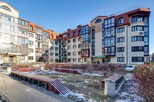 Организована закрытая охраняемая благоустроенная придомовая территория с детскими площадками, зонами для занятия спорта и отдыха: футбольное поле с искусственной травой, баскетбольная и волейбольные площадки, зимой каток.