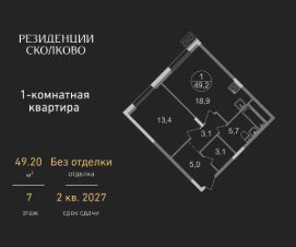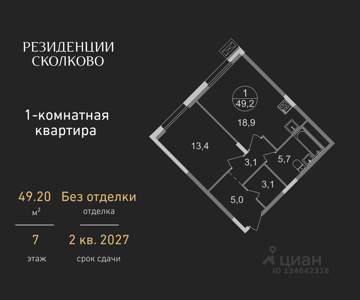 Общая площадь квартиры - 49,2 кв. м, этаж 7 из 9.