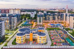 Масштабное озеленение в концепции "двора-парка" и множество площадок отдыха для взрослых и детей. В 5 минутах ходьбы расположен Мещерский лесопарк. В жилом комплексе уже построены и работают 2 муниципальных детских сада с бассейном, школа на этапе строительства. В непосредственной близости - частные и муниципальные детские сады и школы, кафе и рестораны, продуктовые магазины, салоны красоты и другие готовые объекты городской инфраструктуры.
