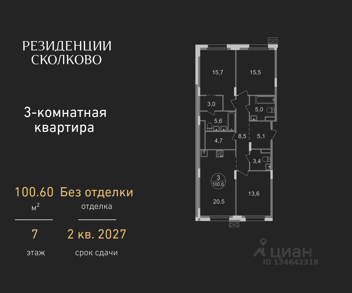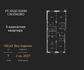 Общая площадь квартиры - 100,6 кв. м, этаж 7 из 9.