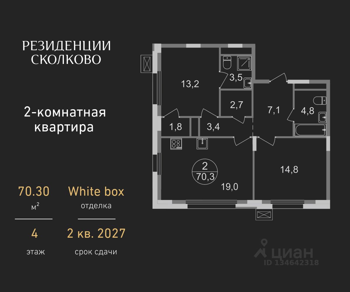 Общая площадь квартиры - 70,3 кв. м, этаж 4 из 9.