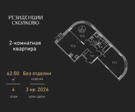 Продается двухкомнатная квартира в девятиэтажном монолитном доме жилого комплекса "Резиденции Сколково".