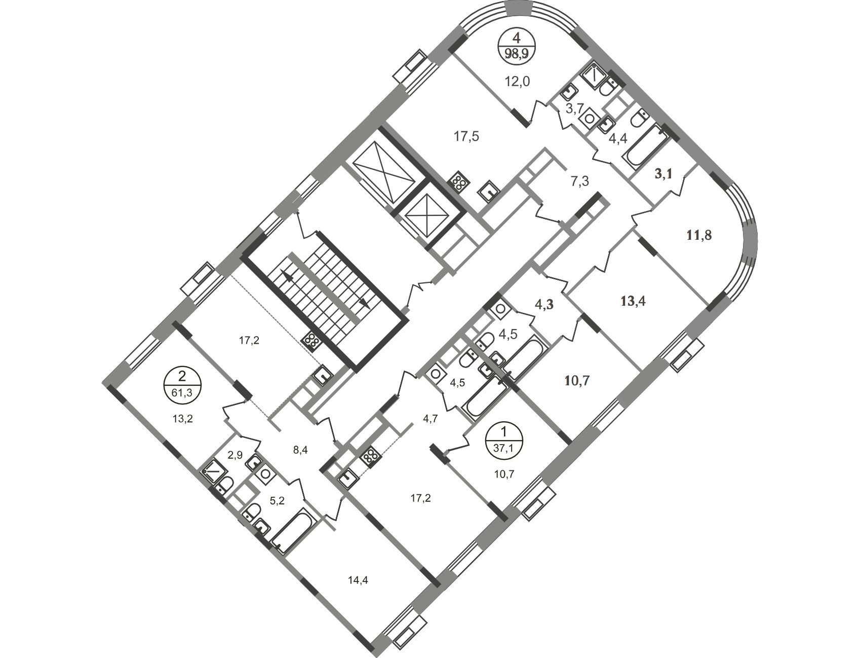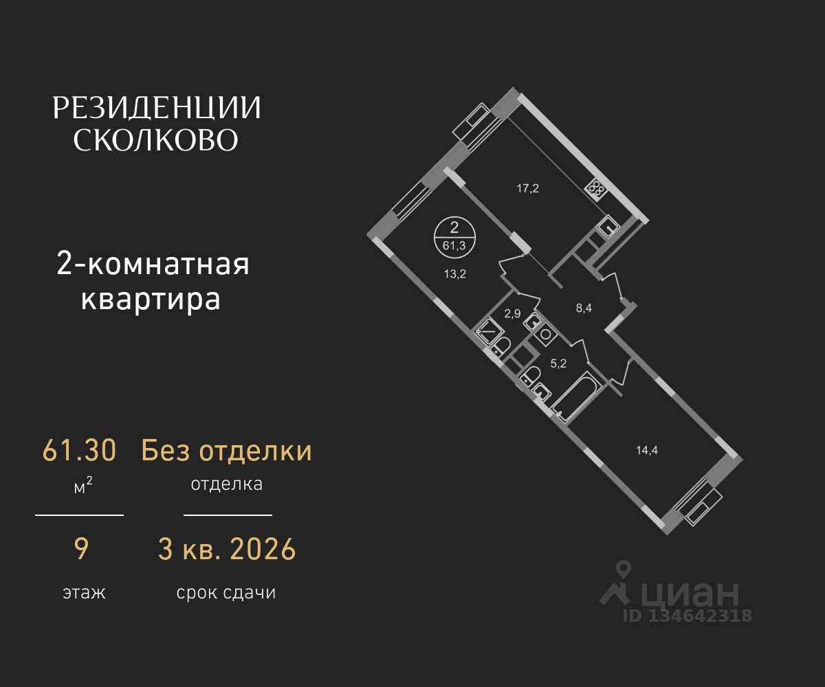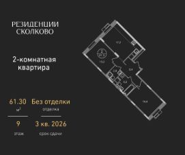 Общая площадь квартиры - 61,3 кв. м, этаж 9 из 9.