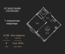 Продается однокомнатная квартира в девятиэтажном монолитном доме жилого комплекса "Резиденции Сколково".