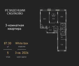 Продается трехкомнатная квартира в девятиэтажном монолитном доме жилого комплекса "Резиденции Сколково".