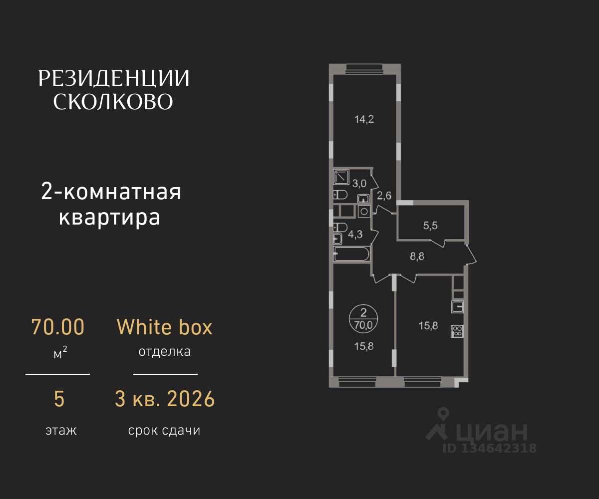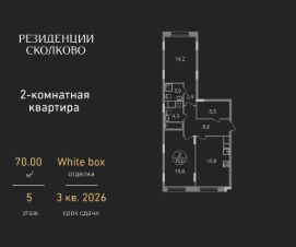 Продается двухкомнатная квартира в девятиэтажном монолитном доме жилого комплекса "Резиденции Сколково".