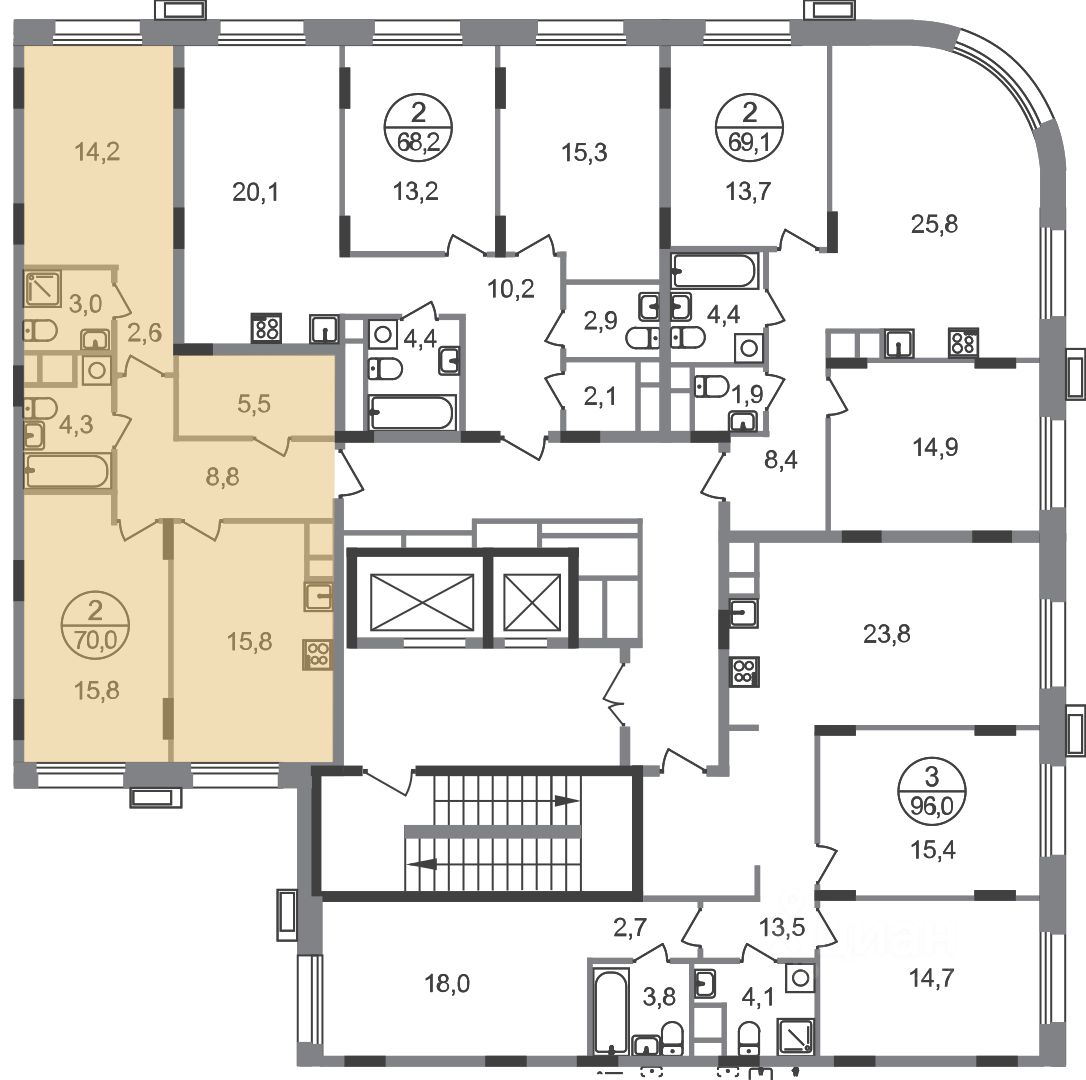 Общая площадь квартиры - 70 кв. м, этаж 5 из 9.
