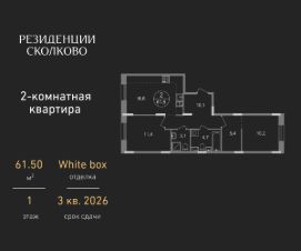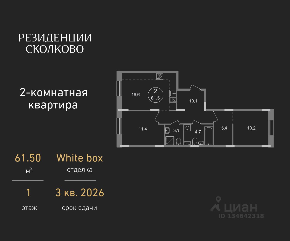 Общая площадь квартиры - 61,5 кв. м, этаж 1 из 9.