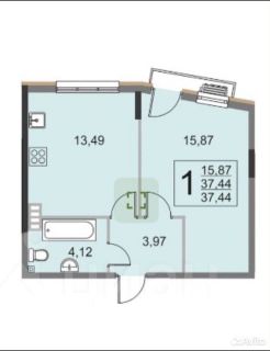 - Общая площадь 37,5 м2, идеальная функциональная планировка, комната 16 м2, кухня 13,5 м2, санузел совмещенный, балкон с видом во двор.