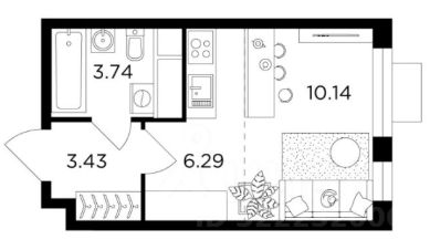 Планировка студии позволяет зонировать пространство. Квартира без отделки, чтопоможет воплотить любые ваши желания. Красивый вид из окон.