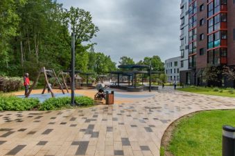 Придомовая территория полностью благоустроена. Есть детские и спортивные площадки, зоны для прогулки и отдыха. На территории ЖК находятся продуктовые магазины, кофейня, пункты выдачи, аптека. Есть подземный паркинг. Рядом с домом новый детский сад, школа в пешей доступности от дома.