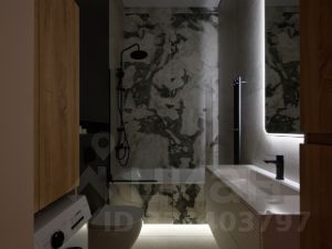 Ванная комната оформлена с использованием керамогранита в нейтральных оттенках, что создает ощущение простора и гармонии. Каждый элемент интерьера подчеркивает его уникальность и стиль, делая пространство визуально больше и уютнее. Есть система теплого пола.