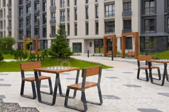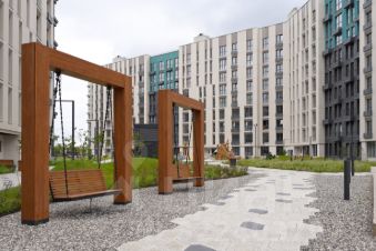 Закрытый охраняемый двор без машин. Круглосуточная охрана, видеонаблюдение по периметру. Красивое озеленение. Детские и спортивные площадки. Подземный паркинг.